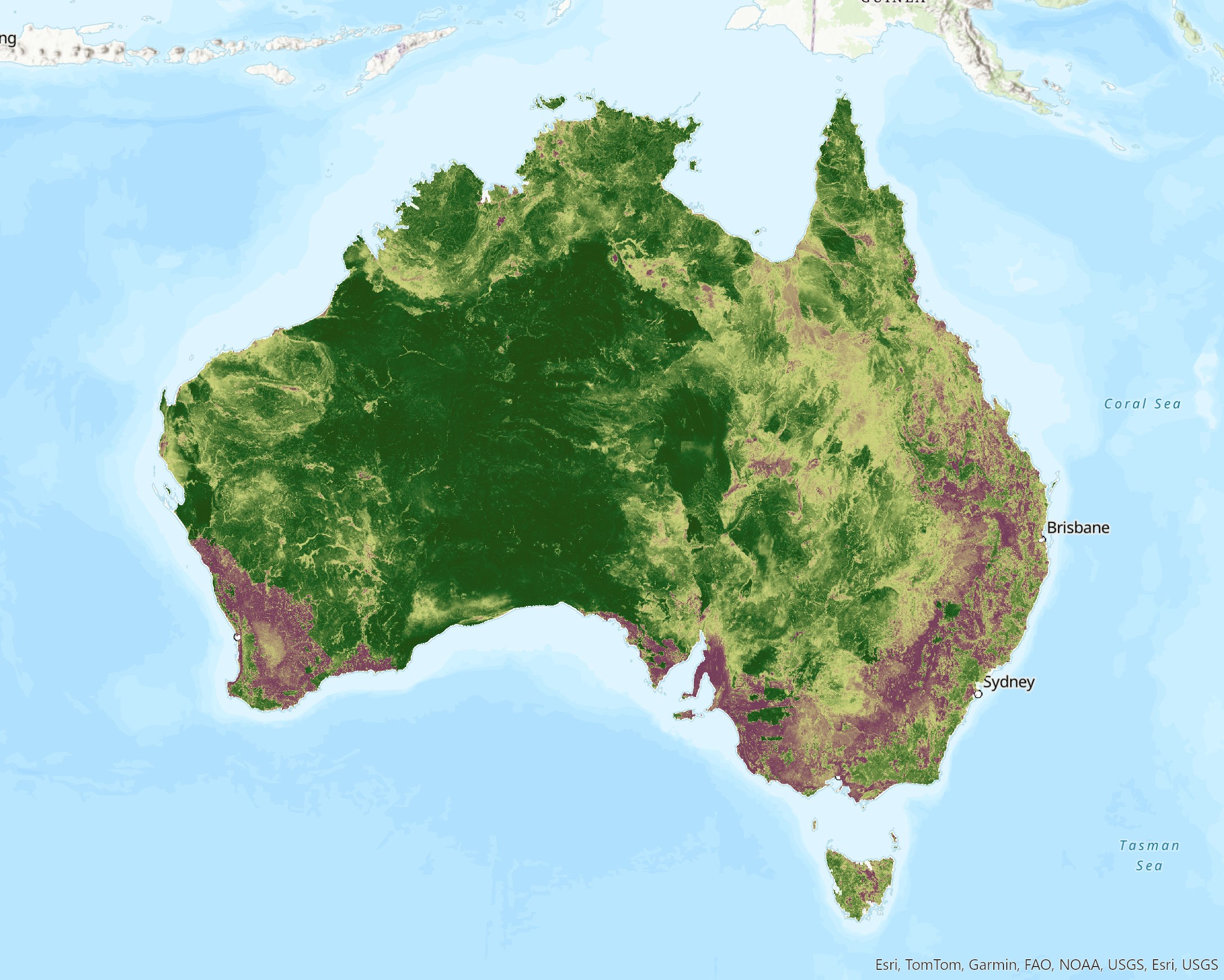 Description: CSIRO has prepared this dataset in partnership with the Australian Government Department of Climate Change, Energy, the Environment and Water (DCCEEW) for use in biodiversity assessment and national reporting such as State of the Environment, Ecosystem Accounting, Ecological Knowledge System, and annual corporate reporting metrics for the environment and heritage portfolio. This dataset is a product of the ‘Priority improvements to the Habitat Condition Assessment System’ project. The HCAS v3.1 is a series of 90m gridded datasets depicting habitat condition on a scale between 0.0 (ecosystem removed) and 1.0 (ecosystem in reference condition) for continental Australia. The index represents the contribution that a given site (90m grid cell) makes to the effective area of ecosystem integrity remaining within any given spatial reporting unit, expressed as a proportion of the contribution made by a site in reference condition. Ecosystem integrity is defined as the ecosystem’s capacity to maintain its characteristic composition, structure, functioning and self-organisation over time within a natural range of variability. Reference condition is defined as the condition against which past, present and future ecosystem condition is compared to in order to measure relative change over time. Habitat condition (syn. ecosystem condition) is a generalised estimate for use in whole of biodiversity assessment metrics and may not represent the specific habitat quality requirements of all component species. The data provided is a long-term epoch (also known as the ‘base model’) derived from Landsat remote sensing variables averaged over 35 years (1988-2022) – HCAS31_HCB_1988_2022.tif. This long-term epoch provides the overall ‘best’ estimate of habitat condition derived from the HCAS method, as an expression of the long-term pattern of ecosystem dynamics and capacity to recover following disturbance. The data is provided as a cloud optimised GeoTIFF (COGs) to facilitate use in webmap applications, 90 m grid resolution, Geographic Datum of Australia (GDA) 1994 (Australian Albers, EPSG:3577).Further ReadingCommonwealth of Australia (2021) Geoscience Australia Landsat Analysis Ready Data Collection 3. National Computing Infrastructure, Canberra, Australia. DOI: https://dx.doi.org/10.25914/6099413995ed0.Giljohann KM, Munroe S, Botha E, Liu N, Williams KJ, Ferrier S and Joehnk K (2024) Identifying reference and highly modified sites for use in the Habitat Condition Assessment System (HCAS). CSIRO, Canberra, Australia.Harwood TD, Lehmann EA, Giljohann KM, Williams KJ, Liu N, Ferrier S, Ware C, Donohue RJ, Sivanandam P, Malley C and Schmidt RK (2023) 9-arcsecond gridded HCAS 2.3 (2001-2018) base model estimation of habitat condition and general connectivity for terrestrial biodiversity, ecosystem site condition, annual epochs and 18-year trends for continental Australia. Data Collection. CSIRO, Canberra, Australia. DOI: https://doi.org/10.25919/arew-q819.Liu N (2024) Australian Land Fraction and Derived Masks. Data Collection. CSIRO, Canberra, Australia. DOI: https://data.csiro.au/collection/csiro:62826.Liu N and Newnham G (2024) Methods for developing the Australian Land Fraction and Derived Masks. Supplementary metadata for a data collection from the National Ecosystem Accounting Project. CSIRO, Canberra, Australia.Searle R (2023) HCAS Optimised SLGA Products. Terrestrial Ecosystem Research Network, Canberra, Australia. <https://aussoilsdsm.esoil.io/other/hcas-optimised-slga-products>.Williams KJ, Giljohann KM, Richards AE, Harwood TD, Lehmann EA, Liu N, Ferrier S, Murphy HT, Prober SM, Hosack GR, Tetreault-Campbell S and Schmidt RK (2023) Extended methods used in developing the Habitat Condition Assessment System (HCAS) version 2.3, ecosystem condition account-ready data and experimental accounts for two mixed-use landscapes. A technical report from the Regional Ecosystem Accounting Pilot projects. Publication number: EP2023-1426. CSIRO, Canberra, Australia. DOI: https://doi.org/10.25919/r12v-ya32.Williams KJ, Liu N, Valavi R, Levick SR, Giljohann KM, Johnson S, Botha EJ, Munroe SE, Lehmann EA, Collings S, Searle R, Niel TGV, Newnham G, Paget M, Joehnk K, Hosack GR, Harwood TD, Malley C, Gunawardana D, Sivanandam P, Richards A, Tetreault-Campbell S and Ferrier S (2024) Habitat Condition Assessment System (HCAS) version 3.1: A guide to the 90-metre data collection. Publication EP2024-5394. CSIRO, Canberra, Australia. <https://publications.csiro.au/publications/publication/PIcsiro:EP2024-5394>